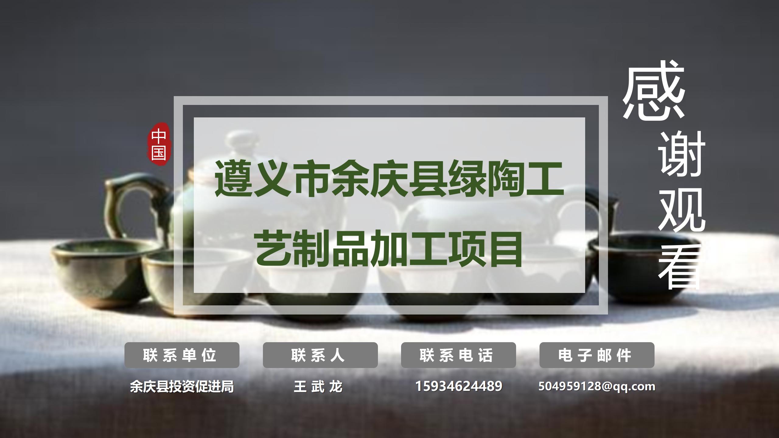 遵义市余庆县绿陶工艺制品加工项目